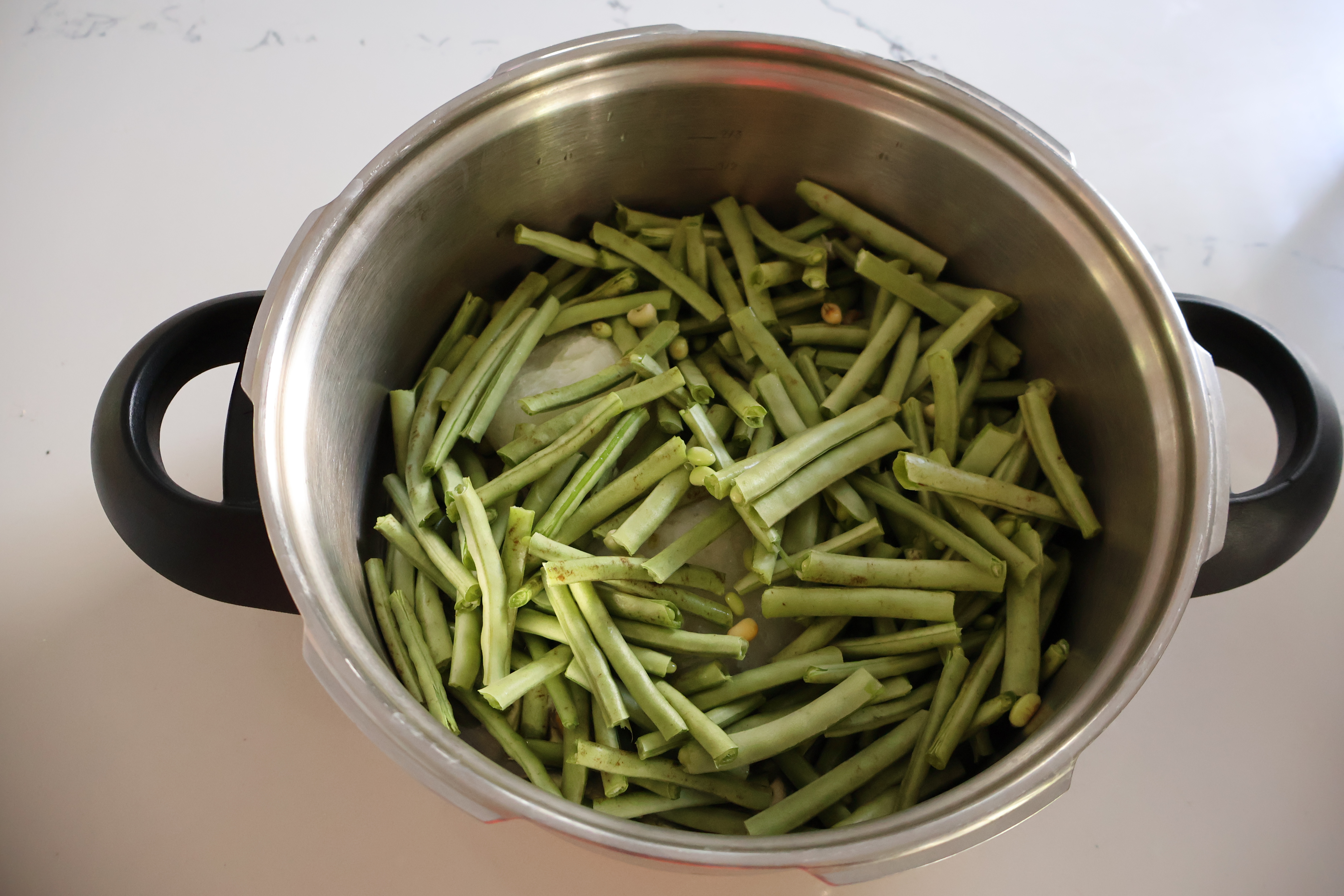 - Wash the cowpeas, remove strings, and cut in halves or thirds.