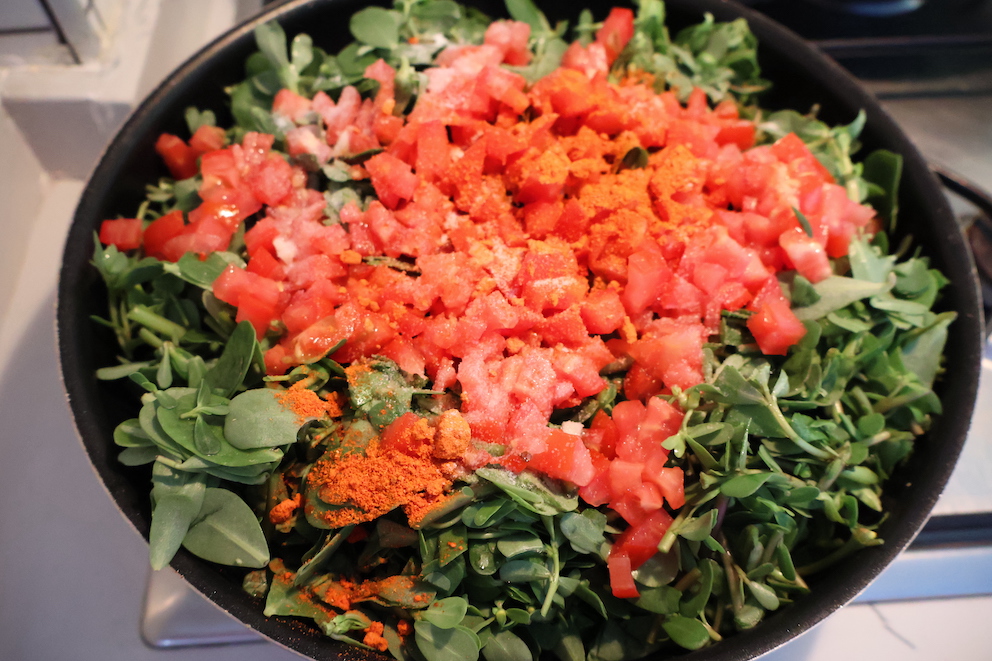 - Wash, clean, and roughly chop the purslane.