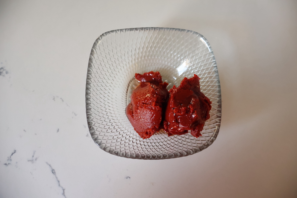 - Add tomato and pepper paste to onions and cook for 7-8 minutes on low heat.