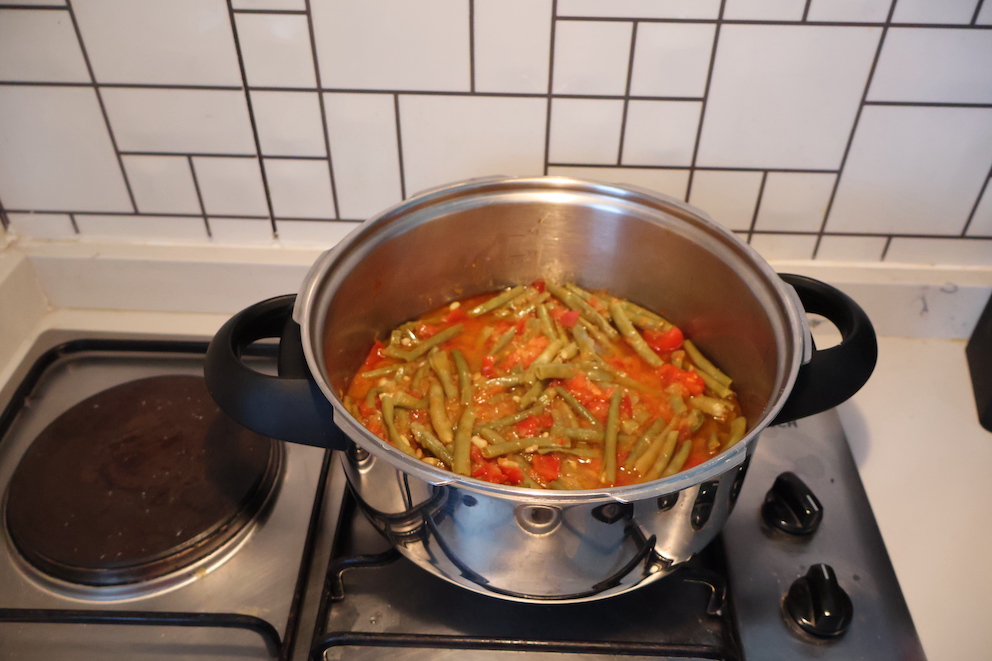 - Cover and cook on low heat, adding hot water once it starts to dry.
