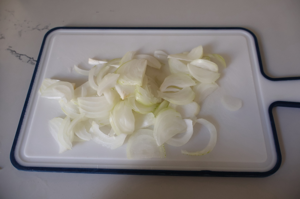 - Sauté onions with half a tea glass olive oil over medium-low heat.