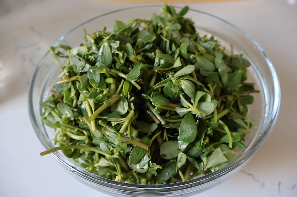 - Wash, clean, and roughly chop the purslane.