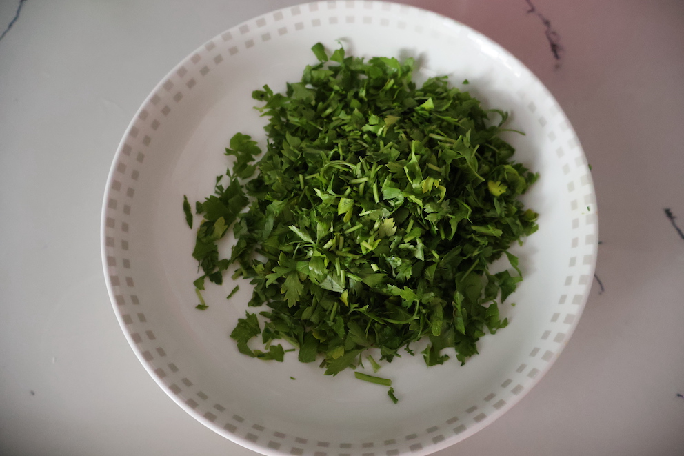 - In a pan, heat olive oil. Chop onion into small cubes and sauté on low for 10 minutes.
