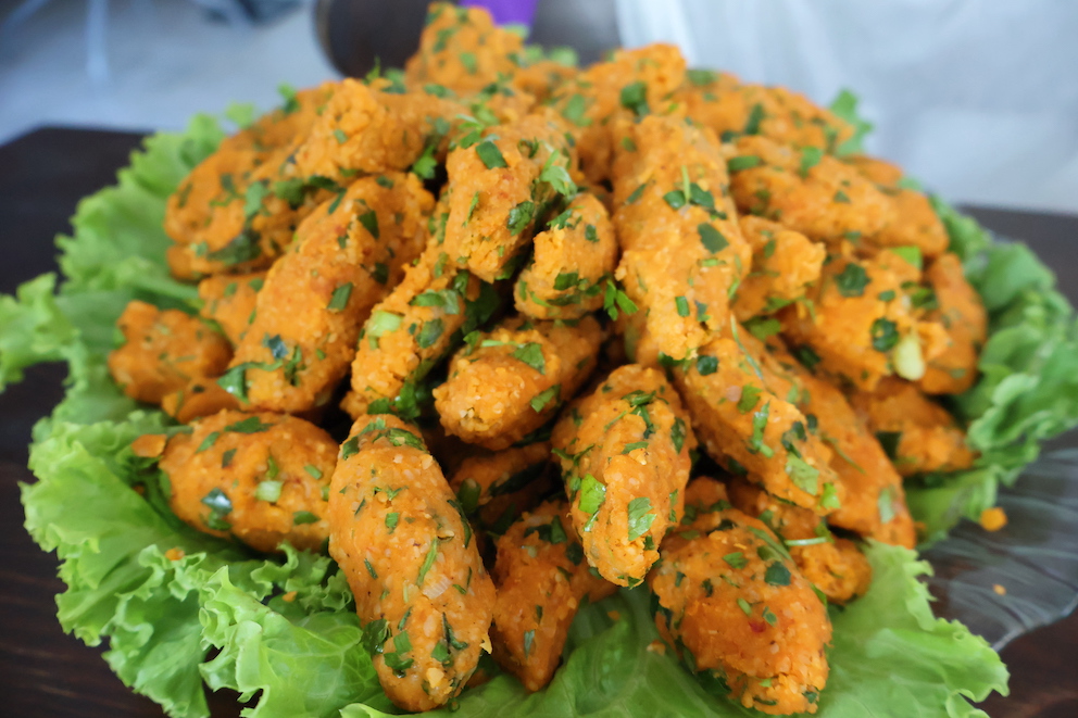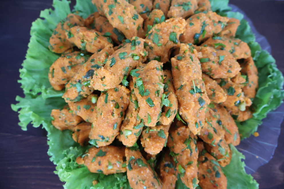 - Mix cooked paste and onion with lentil-bulgur mixture, add salt, pepper, cumin, and paprika.