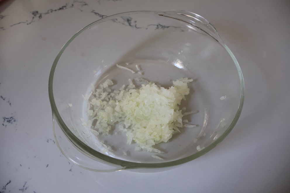 - Wash and finely chop the parsley. Crumble the bread. Grate the garlic.